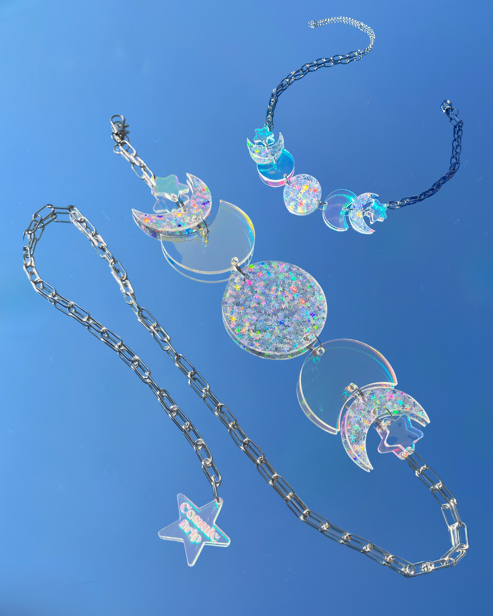 For our COSMIC queens. Shine under the lights with this magical festival belt — glittering moons and iridescent stars that dance with every move!